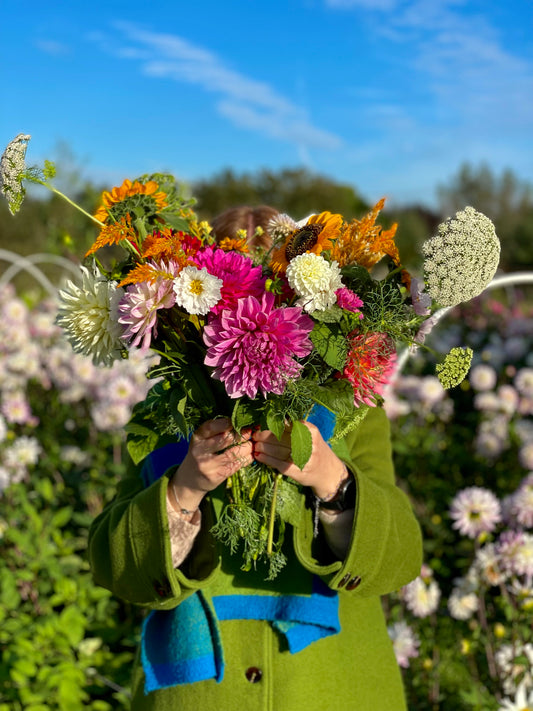 Je kan je bloembon of bloemabonnement online bestellen en ontvangt je plukjeton(s) in de brievenbus! Eén jeton geeft je recht op één biologisch veldboeket van 12 tot 25 stelen. Het aantal stelen in je boeket hangt af van welke bloemen je uitkiest: iedere soort is 1 ☀️ of 2 ☀️ waard!